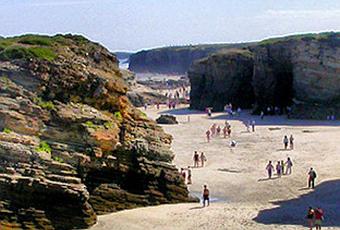 A la Playa de Las Catedrales se le conoce así debido a la apariencia de sus acantilados, que en muchos casos parecen los arbotantes y contrafuertes de catedrales góticas pero su verdadero nombre es Playa de Aguas Santas.