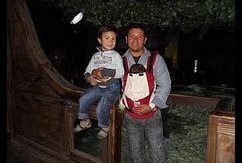 Adrian se lo pasó pipa viendo los animales marinos. Además algunos, como las mantas rayas, son muy sociables y se asoman continuamente para que los alimenten. Gael se pasó el rato dormidito en su mochila pegadito a su papi