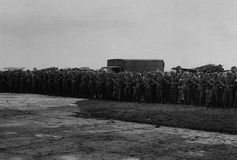 Posteriormente, Adolf Hitler y Benito Mussolini se dirigieron en coche al encuentro de las tropas italianas. La reunión tuvo lugar cerca de la aldea de Lehedzyno, donde los dictadores vieron una imagen terrible de los soldados exhaustos italianos. Como una ceremonia de bienvenida frustrada, Adolf Hitler y Benito Mussolini volvieron sin demora a Polonia desde el aeropuerto de Uman.