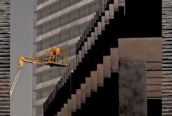 El arriostramiento lateral del edificio queda resuelto por un gesto que contribuye, también, a crear el efecto de edificio exento de una manera muy sutil. Si los pórticos fuesen completamente paralelos podrían plegarse como fichas de dominó. Para evitarlo, los pórticos son concéntricos y toman la forma de un tronco de cono. El núcleo rígido hará el resto.