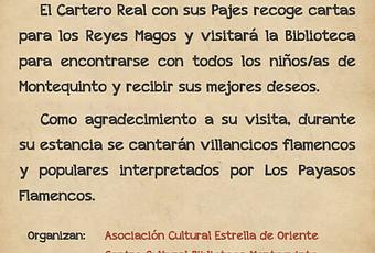 En la Biblioteca de Montequinto, el jueves 16 de diciembre de 2021, de 17:00 a 20:00 horas, VISITA DEL CARTERO REAL A LA BIBLIOTECA, actividad organizada en colaboración con la Asociación Cultural Estrella de Oriente. (*) El evento tendrá lugar en el salón de actos, con un acceso de entrada y otro de salida. ...