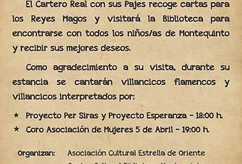 El próximo jueves 19 de diciembre, tendrá lugar en la Biblioteca de Montequinto, la visita del Carteto Real y sus pajes en horario de 17:00 a 20:00 horas, una actividad organizada en colaboración con la Asociación Cultural Estrella de Oriente. El Cartero Real con sus pajes recoge cartas para los Reyes Magos y visitará la ...