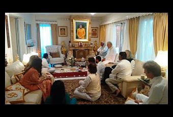 En el pasillo, junto a la chimenea, se sentó en una silla especial e invitó a todos a sentarse. Sra Dimitris, en una oración raro Swami, solicitó su permiso para lavarse los pies. Swami miró profundamente a los ojos y luego le permitió lavar, reveló más tarde el hermano Madhusudan. "Me preguntaba cómo sería?", Dijo. Pero la dama en su devoción trajo un plato y una jarra llena de agua para colocarlo en el taburete para los pies y lavar los pies de Swam. Hermano Madhusudan describe que en una primera experiencia de este tipo, vio a Swami elevar su manto blanco y dhoti con la frontera de oro para revelar sus pies, pero él, poniendo los dos pies de licitación en el cuenco de porcelana grande, permitió que el agua para lavar los pies . "El agua goteaba de lavarse los pies, en pequeñas gotas, incluso después de que se retiró el cuenco. Era tan real que se podía sentir las gotas en su piel blanda ", mencionó Hermano Madhusudan.Como es el sentimiento del devoto, por lo que es el Señor. La señora de la casa se le otorgó este don raro.