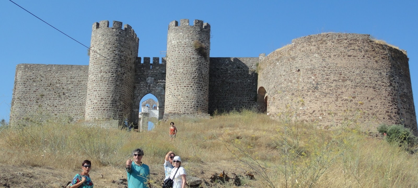 ¡Ahora sí aprieta el calor! ¡Parecemos, bajando del castillo, un ejército en costosa retirada! Y es que después de la comida, tan buena y copiosa, el sol en su esplendor y el secarral de finales de agosto, no dan para otra cosa.LA INABARCABLE ÉVORA.http://moisescayetanorosado.blogspot.com.es/2013/08/evora-patrimonio-mundial-amurallado.htmlEn Évora nos concentramos en las Portas de Avis -de la muralla medieval (s. XIV)- y bajo los arcos de su acueducto de “Agua de Prata”, del siglo XVI, cuya construcción fue dirigida por Francisco de Arruda, el mismo proyectista de la Torre de Belém en Lisboa o el acueducto de Amoreira en Elvas.De allí callejeamos hasta la Universidade, de puro estilo renacentista italiano, que se ordena alrededor de un claustro central porticado, al que se abren las aulas que aún mantienen preciosos púlpitos de madera y revestimiento en sus paredes de azulejería con motivos de las materias que allí se enseñaban.