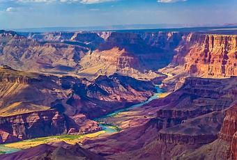 Empecemos por el principio: ¿de qué estamos hablando cuando hablamos del Gran Cañón? Se trata de una garganta excavada en la roca por el río Colorado. Durante millones de años el río ha erosionado el terreno, creando grandes profundidades que dejan ver los colores de la roca.