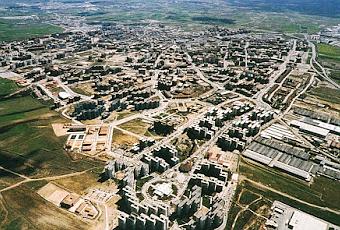 En la parte derecha, la carretera M-506 con el nudo peligroso para entrar a Fuenlabrada-2. Años más tarde se haría el nuevo paso superior a la zona de la actual Universidad y con ese pequeño desdoblamiento, se hizo hueco para el Parque de la Solidaridad. Como curiosidad, esta carretera de circunvalación aún no estaba terminada, hasta 1992 llegaba hasta la carretera de Humanes mientras hacia Pinto seguía en construcción.