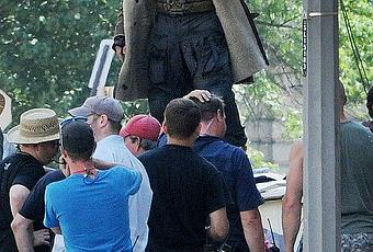 Gracias a Psicocine, traigo un par de fotos del rodaje de ‘The Dark Knight Rises’, y suscribo lo que decía al quedar muy claro que aunque se trate de un villano de cómic, han sabido dar un toque realista al personaje. A veces las mallas amarillas y la lycra deberían quedarse en las viñetas.