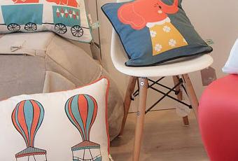 Papel pintado BayaLos cojines estampados con diseños geométricosy con una combinación de colores estupenda