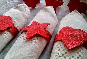 Con un rotulador y una regla haz unas tiras de unos dos centímetros de ancho y lo suficientemente largas para que al hacer el aro , quepan las servilletas.Con unos moldes de galletas por ejemplo, hacemos las siluetas de las figuras que queremos hacer. Recorta todo.Dobla las tiras para hacer el aro , en la unión pon silicona caliente y pega ahí la figura que quieras.