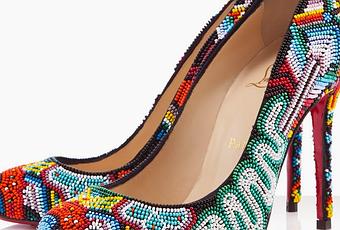 Además de Louboutin, Dione ha lanzado una edición limitada inspirada en el Arte Huichol, lanzando zapatos, sandalias y clunch para mujer