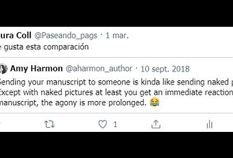 "Enviar tu manuscrito a alguien es algo así como enviarle fotos desnuda. Excepto por el hecho de que con las fotos al desnudo como mínimo obtienes una reacción inmediata. Con el manuscrito, la agonía es más prolongada"