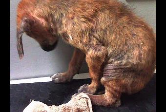 Tiene sarna sarcóptica, se curará, hoy ha pasado su primera revisión en el veterinario: