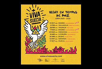 Con un nuevo disco a la vista que tendrá por nombre Hecho en tiempos de paz encontramos una gira de Viva Suecia para los próximos meses. Esta gira los llevará a recintos de gran formato en ciudades como Madrid, Valladolid, Zaragoza, A Coruña, Bilbao, Granada y Murcia. Os dejamos el listado de conciertos donde hay doble sold out en Madrid.