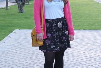 Oye, que me he dado cuenta que no os había enseñado una de las cosas más bonitas que me compré estas rebajas en Dolores Promesas. Ya sabéis que siempre me gusta aprovechar las rebajas ahí por los descuentos tan buenos que hacen y lo mucho que me gustan los diseños :) Las fotos no son muy buenas ya que cuando anochece siempre salen un poco raras pero ahí os dejo el look. Una falda estampada que tiene muy buena caída es la protagonista. Me puse una camiseta también de Dolores Promesas que ya tenía y una chaqueta de Mango fucsia. ¿Qué os parece? Bueno, ¡que estéis teniendo una buena semana! Estefanía