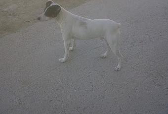Janis es un caso todavía más triste; es una perrilla de caza que apareció por aquí al parecer meses atrás, y se la llevó uno de la obra para cazar. Cuando vio que para cazar no le valía, se la dió a un amigo y este la usó para cría, le quitó los cachorros y la abandonó. La pobre volvió aquí porque sabe que la alimentan y la dejan dormir en la garita de los guardas. Está peor que Bonzo, más débil, porque creo que ha llevado peor vida. Por el miedo que le dan la mayoría de hombres, me parece que le han pegado. Es muy simpática y alegre, en cuanto le haces caso. Son dos perros geniales. El típico perro que va junto a su dueño sin correa ni nada. Solo les hace falta eso, un dueño.