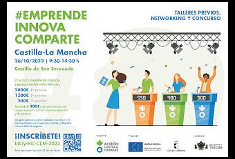 Emprende Innova Comparte es un espacio de encuentro de personas emprendedoras enmarcado dentro del programa VIVES EMPRENDE cofinanciado por el Fondo Social Europeo (POISES) y la JCCM.Tiene como objetivo promover el intercambio de ideas, fomentar el networking, entrenar las competencias emprendedoras y favorecer el impulso de ideas y proyectos de empresa. Durante el evento se organizan talleres prácticos, mesas de experiencias, networking y un concurso con premios a los mejores proyectos de empresa. Diseña tu modelo de negocio y gana premios valorados en: