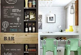¿Pocos metrós cuadrados en casa? Si te ves en la tesitura de que vives en un apartamento y ves limitado el espacio en cada para almacenar botellas y necesitas también una pequeña despensa ,te aconsejo que utilices los altos de tu barra para acomodar roperos empotrados ,en este caso en la pared opuesta de la cocina he optado por colocar una falda pared de yeso que nos sirve de mueble bar cerrado durante el día y pizarra más despensero ¿ te animas al cambio? yo desde aquí te animo a que no cierres las puertas a que si tienes dudas o estás cansado de intentar cambiar algo que no te gusta en casa,me envies un e-mail y te ayudaré y aconsejaré en todo lo que necesites.