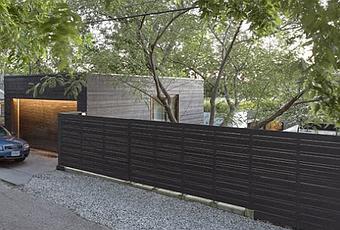 La vivienda se muestra poco exteriromente en su acceso, solo una volumetria simple y contundente, interiormente es muy rica su espacialidad.