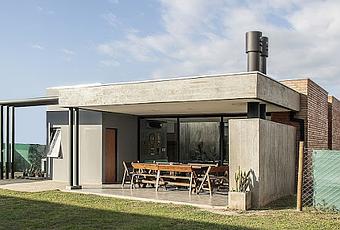 La casa, fue disenada en el 2018, por el estudio de arquitectura Etereo Arquitectos., esta construida en ladrillo, un material muy utilizado en Argentina, y hormigon armado.