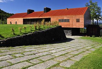 La vivienda es un volumen unico asentado sobre el terreno y muros de piedra, con sustraccciones, construida en madera, chapa y piedra