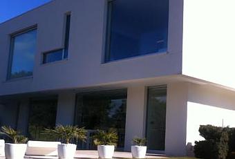 La edificación se emplaza en una parcela horizontal de 1.000m2. La volumetría de esta vivienda destaca por un diseño de líneas limpias compuesto por dos rotundas piezas superpuestas. La pureza de formas se une al blanco impoluto de la fachada convirtiendo la sencillez en la virtud de este proyecto.