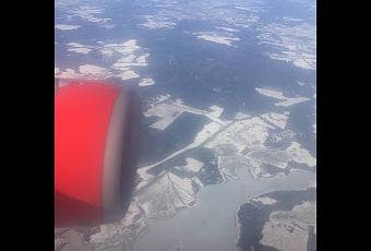 Desde el cielo vi varios campos y bosques nevados y lagunas congeladas que me auguraban un frío polar, pero afortunadamente no fue para tanto.
