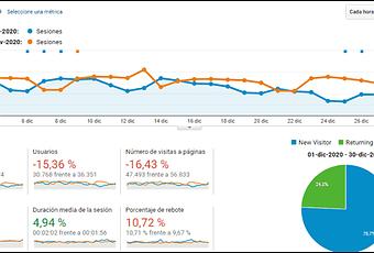 👀 Ojo, aunque veas números en rojo y un 10% menos de sesiones en los datos de antes, es que todos los años en diciembre este bajón suele ser del 30%.