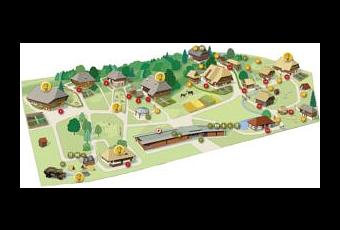 Al entrar nos dieron un folleto en español con un mapa del museo. Le echamos un vistazo y observamos que estaba compuesto por seis fincas, la casa del jornalero y varios edificios, como molinos, aserraderos, graneros, establos, capillas, o despensas. También observamos que en algunos edificios del plano, había dibujado un hombrecillo. Esto significaba que en ese edificio habían actividades para los niños.