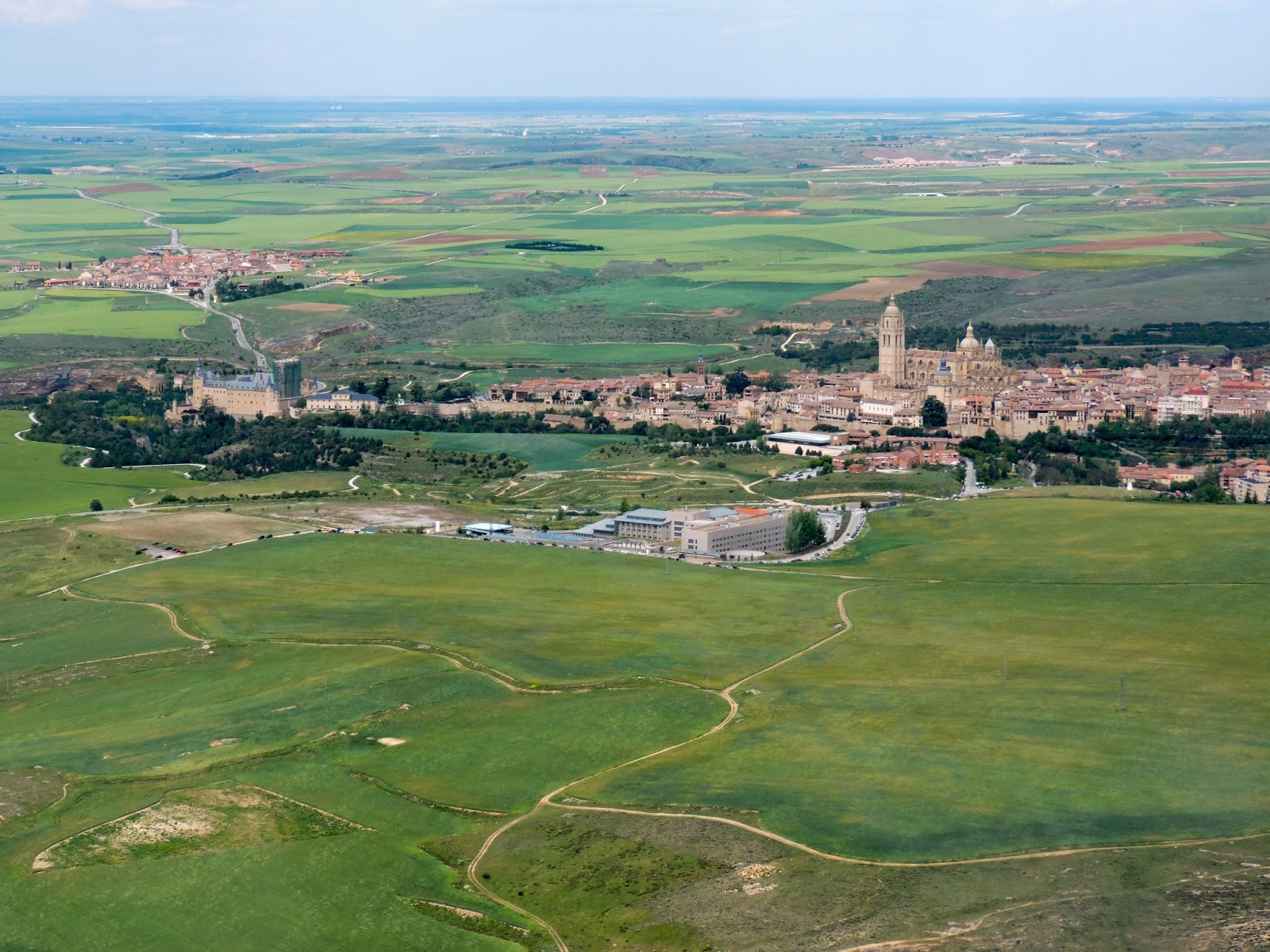 El viaje a Segovia desde Casarrubios es un viaje que no dura mucho, que permite ir al campo de Marugán, donde nos recibe siempre Edu, con una amplia sonrisa, da gusto ir allí, te tomas una coca cola, si te llevas el bañador ahora te puedes dar un bañito rápido y después toca sobrevolar Segovia para disfrutar del espectáculo visual que la ciudad ofrece desde arriba con el Alcázar, la Catedral, y el Acueducto. He de reconocer que disfruto mucho mostrando a mis alumnos Segovia. Es muy especial cada vez.