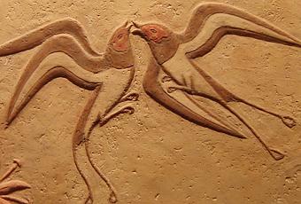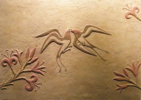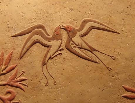 Detalle de los frescos de Akrotiri en Thera, II milenio a.C. Museo Arqueológico Nacional de Atenas. Las formas de la pintura cretense son más ligeras y atrevidas. Dejan de lado la rigidez de la pose propia del sentido religioso de las culturas egipcia y mesopotámica para representar a los dioses con forma humana y a la misma escala que los hombres. La pintura cretense, si bien en sus inicios mantiene la frontalidad, evoluciona y da volumen a los cuerpos usando las medias tintas o las gradaciones de color. En otro sentido, si bien recrea los mismos temas de la vida cotidiana, capta con más humor y espontaneidad las actitudes y los gestos; Finalmente, incorpora los ritmos, derivados de la reproducción de losdetalles y de las formas geométricas propias de las culturas del metal: espirales, bucles, olas etc.