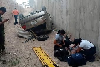 Un automovilista sufrió una volcadura en la Carretera 57 al hacer caso omiso a la señalética de construcción en el cruce con Anillo Periférico Oriente, Col. Azteca. Equipos de emergencia ya se encuentran en el lugar atendiendo a la persona involucrada.