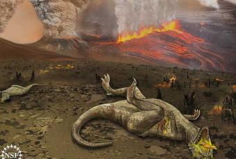 La actividad volcánica en la actual India, no un asteroide, podría haber matado a los dinosaurios, según un nuevo estudio.Decenas de miles de años de flujo en lava de las Deccan Traps, una región volcánica cerca de Mumbai en la India actual, pueden haber arrojado niveles tóxicos de azufre y dióxido de carbono a la atmósfera y causado la extinción masiva a través del calentamiento global y la resultante acidificación de los océanos, sugiere la investigación.