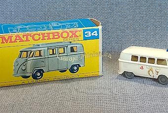 La escala del Volkswagen Camper, de Matchbox, es 1:66. El dato que fue una segunda serie del modelo presentado en el catálogo del año 1967. Ya que no tenía el techo elevado en demasía. Este modelo se ofreció entre 1969 y 1970, por lo que pude investigar, y es considerado pieza #34d.