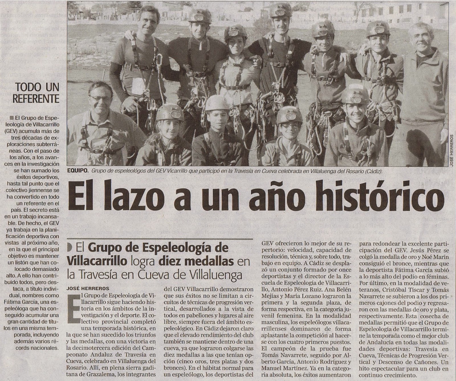 Tras los últimos éxitos cosechados en el XIII Campeonato de Andalucía de Travesía en Cueva celebrado en Villaluenga del Rosario (Cádiz), de nuevo el Diario JAEN, a través de José Herreros, divulgan esta noticia en prensa hoy sábado 6 de Diciembre de 2014: Queremos dar las gracias una vez más tanto a José Herreros como al Diario JAEN por divulgar todas y cada una de nuestras actividades.