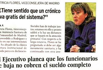 Dice una consejera de la Comunidad de Madrid… ¿Es lógico que los enfermos crónicos vivan gratis del sistema? Dice el gobierno del Estado: Los funcionarios de baja… que cobren menos… Y además: A pagar medicinas, ambulancias, muletas…