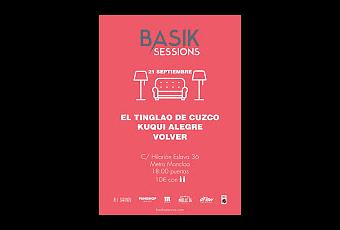 Las Basik Sessions presenta en directo a Volver, Kuqui Alegre y El Tinglao de Cuzco en Muelle 36.Basik Sessions ha empezado temporada y el 21/9 hay show en Madrid con tres propuestas interesantes.
