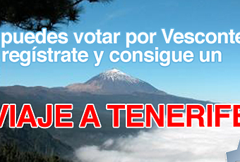 ¿Quieres ayudarnos en nuestra tarea? Como sabrás, el periódico El Norte de Castilla ha nominado a Vesconte para el premio a la web más innovadora en Castilla y León. Además, optamos al premio del público, y ahí es donde te pedimos tu apoyo. Las peculiaridades del concurso hacen que sean los votos de personas que se registren en el mismo los que cuenten de verdad, siendo ignorados los votos anónimos. Por eso, te animamos a participar en el concurso. Regístrate y vota por Vesconte a través de la web del concurso y, gracias a ello, participarás en el sorteo de un viaje a Tenerife para dos personas de una semana de duración en un hotel de tres estrellas. ¿Te animas a votar por Vesconte?