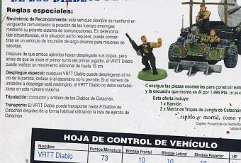 Nuestro compañero Anastasius me ha traído otra curiosidad mas sacada de la WD 44 ES(Diciembre de 1998).Y es una de esas míticas paginas de la mini revista Troll que a veces venían incluidas en las WD del momento,con ofertas de lo mas curiosas que hacia el servicio de Venta Directa de GW España(Porque en aquella época había verdaderamente un servicio de Venta Directa de GW España con una cierta autonomía).Lo que viene en esa hoja es una oferta para hacer un "Vehículo de Reconocimiento Todo Terreno Diablo" para los Diablos de Catachan que no era mas que por unos 12 euro actuales mas o menos,tener un Kamion orko de los que se usaban en Gorkamorka en aquella época(Y mas tarde se pasaron a W40K estadar hasta la llegada de los nuevos) y dos matrices de Catachanes,para crear el vehículo,transformar la tripulación(Entre lo finos de cuerpo que aun eran en aquella época los orkoz comparados con los actuales y el cuerpo de los Catachanes no era muy difícil) y de paso la unidad de tropas que iba en el.Ademas,te daban las reglas,coste y demás.No se hasta que punto este tipo de unidades eran oficiales,pero la verdad es que yo no recuerdo haber visto ninguno delante de mis tropas.