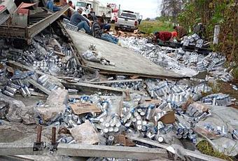 San Luis Potosí.- Un tráiler que transportaba un cargamento de latas de cerveza volcó esta mañana en la súper carretera SLP-Rioverde, específicamente cerca de la localidad de Cerritos. El accidente no solo ocasionó el derrame de la mercancía en la carretera, sino que también generó un incidente de rapiña por parte de algunos transeúntes y vecinos de la zona.