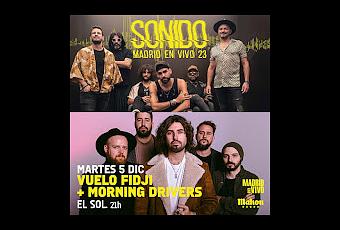 Mano a mano de Vuelo Fidji y de Morning Drivers desde el escenario de El Sol dentro de un ciclo lleno de matices.Vuelo Fidji y Morning Drivers estarán este martes en directo en El Sol donde presentarán sus canciones en eléctrico. Dentro de la propuesta de Sonido Madrid en Vivo llega esta fecha en El Sol donde podrán presentar sus buenos directos, Morning Drivers llegan a la península con ganas de seguir presentando sus canciones, tras un verano de lo más interesante. Vuelo Fidji siguen en su interesante gira, es por esto que la fecha en Madrid se antoja especial antes de terminar el año.