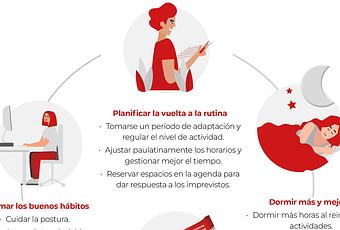 Asimismo, es muy importante ajustar paulatinamente los horarios, «sobre todo los de levantarse y acostarse, pero también los de las comidas», afirma el experto, «al menos desde una semana antes de la reincorporación a la actividad regular».