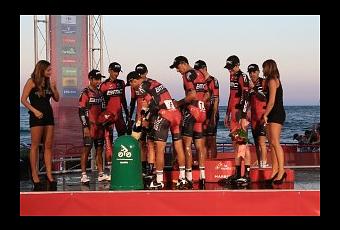 Como manda la tradición, los miembros del conjunto ganador subieron al pódium para celebrar su triunfo agitando botellas de champán, pero, además, su celebración ha servido para poner de manifiesto la implicación de la Vuelta en el respeto al medio ambiente, depositando sus botellas en un contenedor de Ecovidrio.