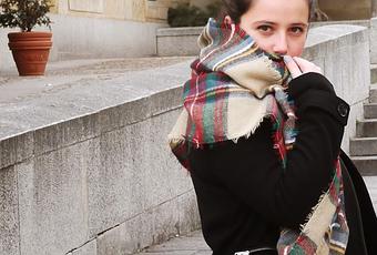 Este modelo de bufanda estoy segura que la veis por todos lados, yo también. Al cabo del día me cruzo con muuuchas chicas que la llevan. A mi novio no le gustan nada, y me dice que llevo la manta del sofá, pero ¡a mi me encanta! Es muy calentita, suave y con un motivo muy clásico que combina con todo. Ha sido mi aliada durante los días más fríos de estos meses. Es de Bissú y ya sabéis que a mi esa tienda me tiene conquistada. ¡Calidad y muy buen precio!