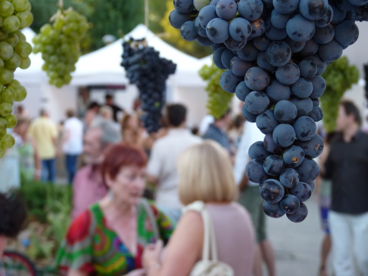 Un mes en el que la viña está en su máximo esplendor, mostrando el fruto de la uva y esperando a que sea vendimiada. Un momento en el que las cepas quedarán aliviadas del esfuerzo realizado durante el año, al aguardo del otoño, cuando con la caída de las hojas, esperan la llegada del invierno para entrar en un reparador letargo, hasta el regreso de la primavera.Septiembre y la vendimia, finalizan con el colofón de una gran fiesta. El final de un ciclo, pero el principio de un nueva tarea, velar y atender al nuevo vino que nace de la vendimia del año, el Vino Joven o Vi Novell, que será presentado a las puertas de diciembre.Gente disfrutando de la fiesta de la Vendimia