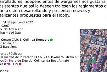 Vamos a empezar el día con una muy buena noticia. Vuelven las Strategic Land!! Este año hay otra uno de los eventos con mas solera, dedicado a wargames, juegos de mesa y juegos de la Ciudad Condal. Tras el paréntesis obligado, entre otras cosas, por la pandemia Covid, ya tenemos toda la información que nos ha mandado la organización (+1 al Dau) en la imagen que veis en la cabecera para que se celebre la 14ª edición del evento el 2 de Julio.