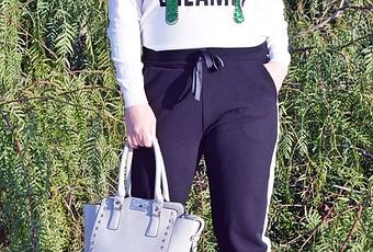 Yo cuando vi este jersey con mensaje y con los dos cactus con lentejuelas me pareció una cucada. Además el jersey es de punto lo cual lo hace perfecto para estos días de frío que estamos teniendo. Y por si fuera poco el combo con el pantalón negro de raya lateral es perfecto. Este tipo de pantalones los usaba yo en mi época de adolescente, ahora al llevarlos es como revivir aquellos años. No me acordaba de lo cómodos que podían llegar a ser. Son un híbrido entre pantalón de chándal y pantalón chino, pues tiene lo mejor de cada uno: el tejido del chandal y el corte del pantalón chino.