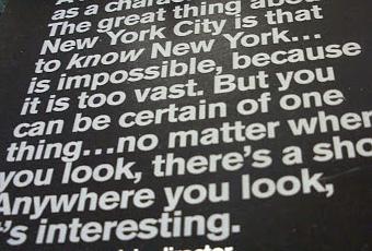 Una localización es tan importante como un personaje en una película. Lo mejor de Nueva York es que... conocer Nueva York... es imposible, porque es demasiado grande. Pero puedes estar seguro de algo: no importa hacia dónde mires, tienes un plano. Donde quiera que mires, hay algo interesante.