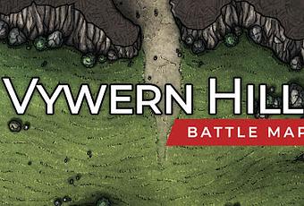 Vywern Hill, es la ultima creación de OneDayGM, y esta inspirada en la aventura de D&D 5ª ed Lost Mines of Phandelver (En la localización de Vywern Tor, para mas señas).El plano representa una guarida de ladrones, escondida en unas cuevas, situadas en unas colinas herbosas. Es decir, la guarida y sus inmediaciones. Dentro del archivo gráfico, hay tres versiones del mismo plano(De día, de noche y en blanco y negro "limpio") con la siguiente calidad gráfica y resolución: