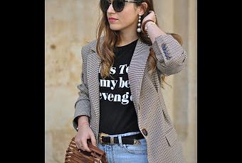 Quien nos iba a decir que hace tan solo unos días íbamos en americana y sandalias, y que hoy ya es hora de sacar los abrigos peluditos. El tiempo ha cambiado tanto que quizá estás imágenes de algunas semanas atrás habría que acompañarlas de alguna prenda de abrigo y unos botines, pero el look en si es un clásico que no me quitaré en todo el invierno: mum jeans + camiseta con mensaje + americana de cuadros oversize.