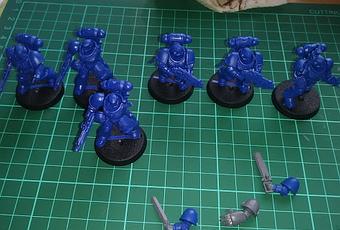 Como me envió el contenido de dos fascículos, ahora tengo seis Primaris Intercessor. Ya los he montado y hasta he transformado los sargentos con armas de quita y pon para tener algo de variedad en cuerpo a cuerpo, como podéis ver en estas fotos.Simple pero efectivo: